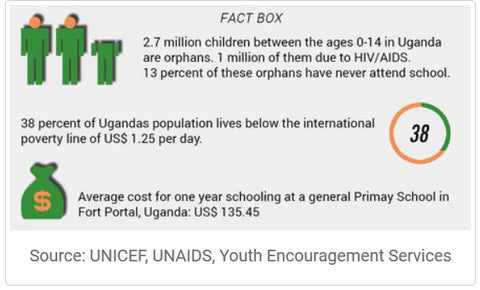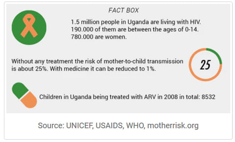 Wusstest Du, dass allein in Uganda über 8 Millionen hilfsbedürftige Kinder und ca. 2 Millionen Waisenkinder unter 18 Jahren leben, über eine Million davon aufgrund von HIV und Aids? Und oft wird die Krankheit den Kindern sogar selbst mit in die Wiege gelegt, weswegen von 1,5 Millionen HIV-Kranken Menschen, 190 000 maximal 14 Jahre alt sind. Ohne eine Behandlung beträgt die Wahrscheinlichkeit der Mutter-zu-Kind Übertragung rund 25 %. Mit der Hilfe von ärztlicher Behandlung kann sich die Wahrscheinlichkeit auf 1 % reduzieren.